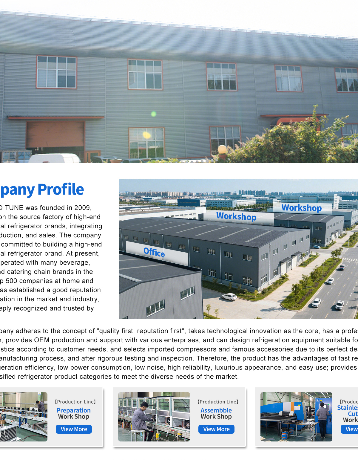 Principaux produits : Réfrigérateur de bar à eau, réfrigérateur de cuisine, réfrigérateur à rideau d'air, réfrigérateur à gâteau, réfrigérateur à boissons